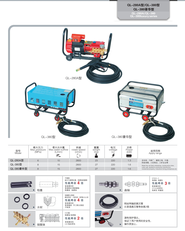 上海神龍集團生產的高壓清洗機QL-380新款清洗機,適用洗車場、汽修廠、建筑工地、外墻、防疫消毒、小區物業、工礦企業等。